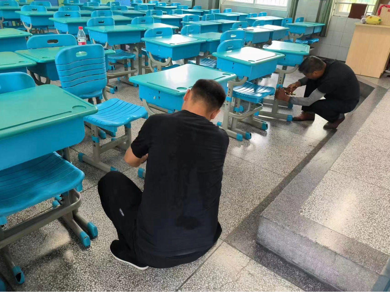 走近各个校园,映入眼帘的是清新、整洁、爽朗的环境。校园大门、门牌擦得锃光瓦亮,地面被冲刷的干干净净,周边的杂草也已全部清理干净。在苗圃边、草坪上、大树下,工作人员正忙着扫落叶、拔杂草、修枯枝。走进教室,所有的课桌椅整整齐齐的摆放,黑板、地砖、窗台都擦得很干净。此外,细心的维修工师傅将每个教室灯、楼道灯、楼梯扶手、卫生间水龙头等设施逐一检查,确保开学后教学设施的正常运行。部分学校在新学年调整了班级设置,物业人员主动应校方要求,加班加点协助校方搬运课桌椅、讲台等教室器材设施。