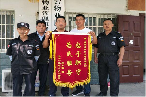 近日,被盗车主王先生将一面印有“忠于职守、为民服务”的锦旗致送到卧云新村物业办公室,向我方保安人员恪尽职守的工作精神表示感谢。锦旗代表了业主对我司物业工作的认可,更要求了我司将忠于职守的责任理念树立在每个工作者的心中。面对这面锦旗,管理处工作人员向业主承诺,卧云现场物业管理处将于卧云居委会、临湖社区委紧密配合,加大对辖区治安巡查力度,增加每日的巡逻次数,加强重点时段、重点位置的巡防;同时加大治安防控知识的宣传,提高居民自我防范意识,全力保障辖区居民生命财产安全。