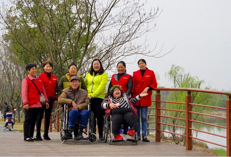 上午9点,残疾人在志愿者们的帮助下展开游园活动,呼吸着公园里新鲜的空气,精神奕奕、一路上拍照、赏花,欢声笑语,“好看,真好看,2015年之后就没有来过南艳湖公园了,现在花好看,湖也美,整个人比在家轻松了许多。”漫步于公园的各个景点,黄春霞心情格外舒畅。