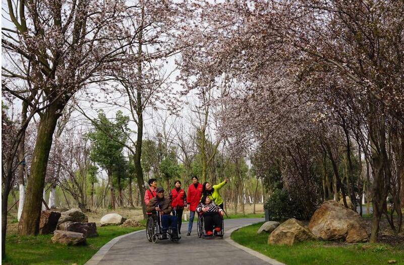 “好久都没有出来走走了,今天的春光春景真的很久都没有享受过了,真漂亮。”黄春霞说道,坐在轮椅上的5年里,这是她第一次这么畅快的春游体验。而57岁的曹龙霞更是露出久违的笑脸,坐在轮椅上跟志愿者们一直在拍照。“特意跟儿女们要了一个带摄像头的手机,好好拍拍春天的景色。”