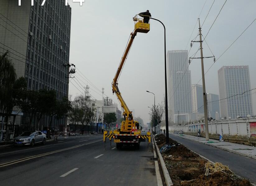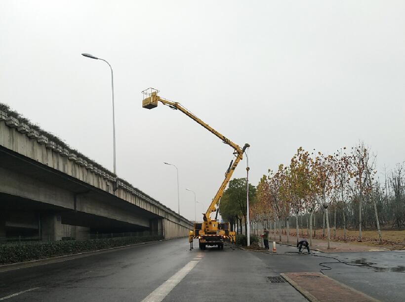 (路灯维修现场)