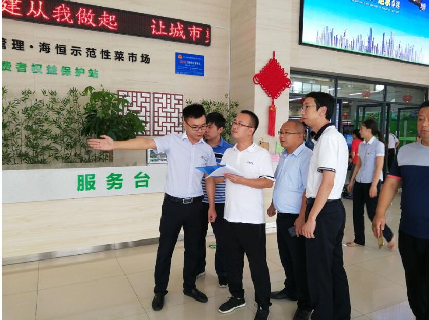 此次验收评定包括场地环境、设施设备、服务设施、商品管理、卫生管理、市场管理6个方面,涉及市场硬件改造提升、日常管理等多个内容。市场验收测评分两组同时进行,验收评定严格细致,工作人员详细对照评定细则,认真查看每个细节,并拍照取证。