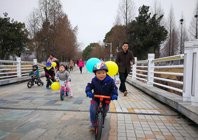 在略带寒意的初春中,欢乐的孩子和家人们,漫步在飞虹桥上欣赏湖天一色,穿行在晨练道上迎着拂面杨柳风通过自然环境中的骑行,锻炼培养了儿童的意志力和耐力,更是切实的教育儿童保护大自然环境,不破坏绿化,爱护公共环境。(齐文娟 供稿)