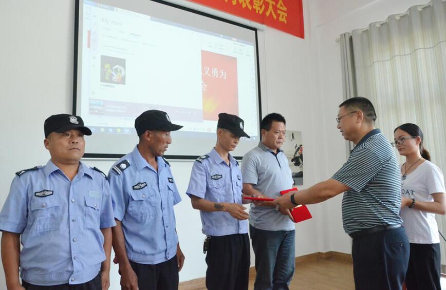 会上,李茂茂宣读表彰决定,赵志刚、钟俊明为受表彰人员颁发荣誉证书和奖金。