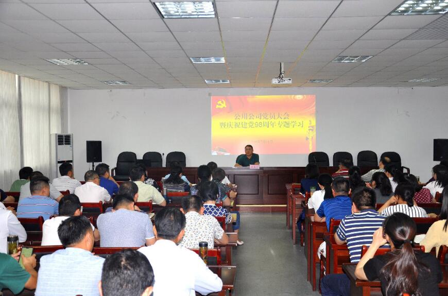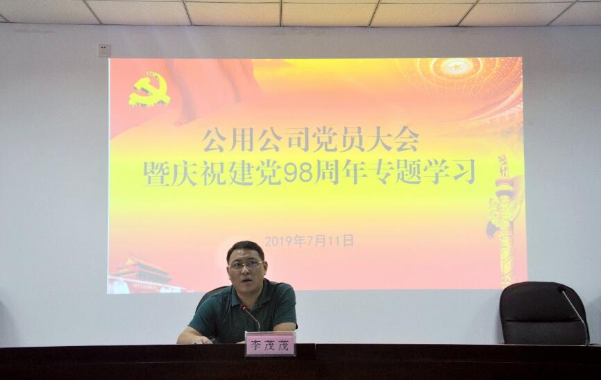 7月11日下午,公用公司召开党员大会暨庆祝建党98周年专题学习会议。公用公司总经理、党支部书记李茂茂主持会议,公司全体党员、中层以上非党员干部、新入职员工共计90余人参加会议。
