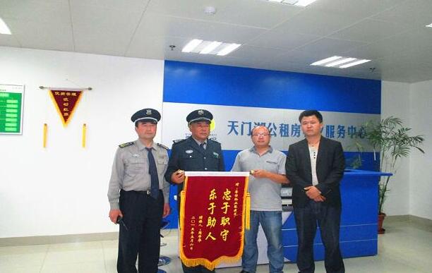 5月7日下午,周布华带着一面写着“忠于职守乐于助人”的锦旗,送到公租房物业中心,再次表达了家人对张建军以及中心的感谢之情。(李斌 李勇供稿)
