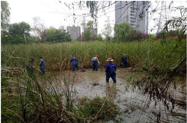 派河沿岸景观整治绿化工程。因项目的特殊性,其施工方案也在过程中灵活调整。在天气多变的影响下,香怡园林以现场施工快速有效、苗木成活率高为准则,采用人机配合的方式,同时充分利用南区自建苗圃资源,调取蒲草、相应苗木保证供应。
