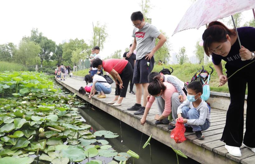 两湖公园河塘和旱溪密布,龙虾较多。我们事先准备好饵料和龙虾以供垂钓。翡翠湖风景区管理处工作人员说,“举办此次活动也是为孩子们提供了一个亲近自然的机会,让摸鱼钓虾的乐趣不再是现代都市孩子们生活中的奢侈品。