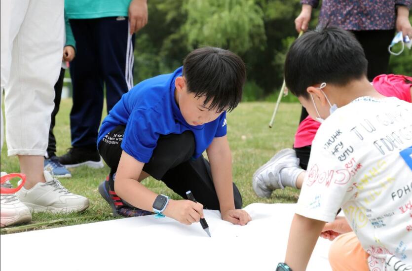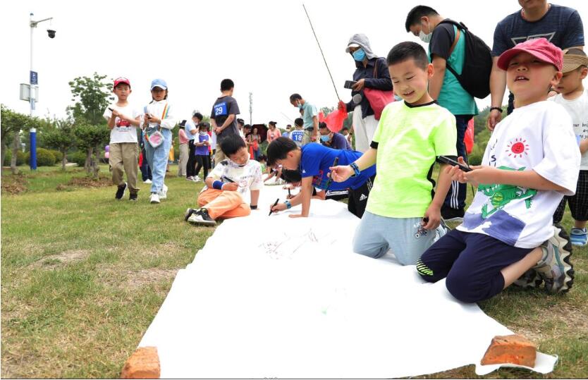 垂钓结束后,园区管理处统计汇总每组家庭垂钓数量并分发奖状和礼品,同时开展涂鸦活动。
