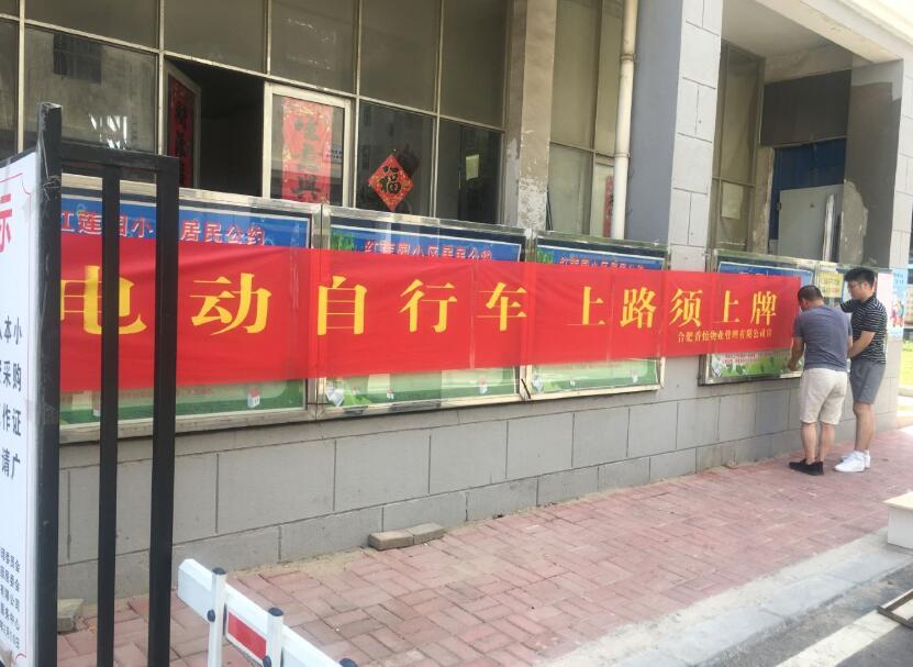 截至目前,香怡物业已在管理项目点张贴200余张宣传海报和宣传横幅,同时紧密联合居委会对小区出入人员进行政策讲解。下一步,物业服务中心将严格落实合肥市电动自行车规范管理要求,配合推进电动自行车上牌工作。
