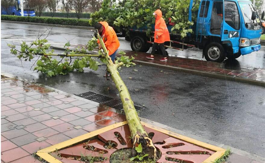连夜的狂风暴雨使得工作人员不敢懈怠,精品道路组在巡查过程中还发现笔峰路和广玉路交口的景观树木倒伏严重,立马对两边的树木进行检查,校正了存在安全隐患的10余棵树木,避免出现安全事故。