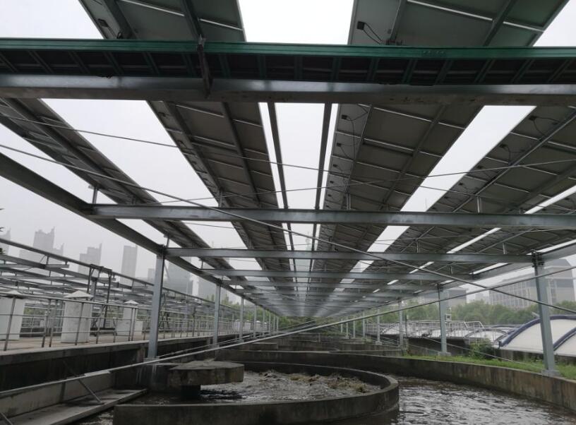 排水管理中心合肥市排办及市产投集团旗下金太阳公司及皖能集团介绍光伏节能技改方案进行了沟通交流,该项目通过光伏组件、钢网架结构等设施对氧化沟和沉淀池进行了有效封闭,使得周边居民看到的不在是污水处理的场景,而是一排排整齐排列、源源不断提供清洁绿色能源的光伏组件,遵循了“绿水青山就是金山银山”的理念,也解决了困扰已久的环境保护问题。