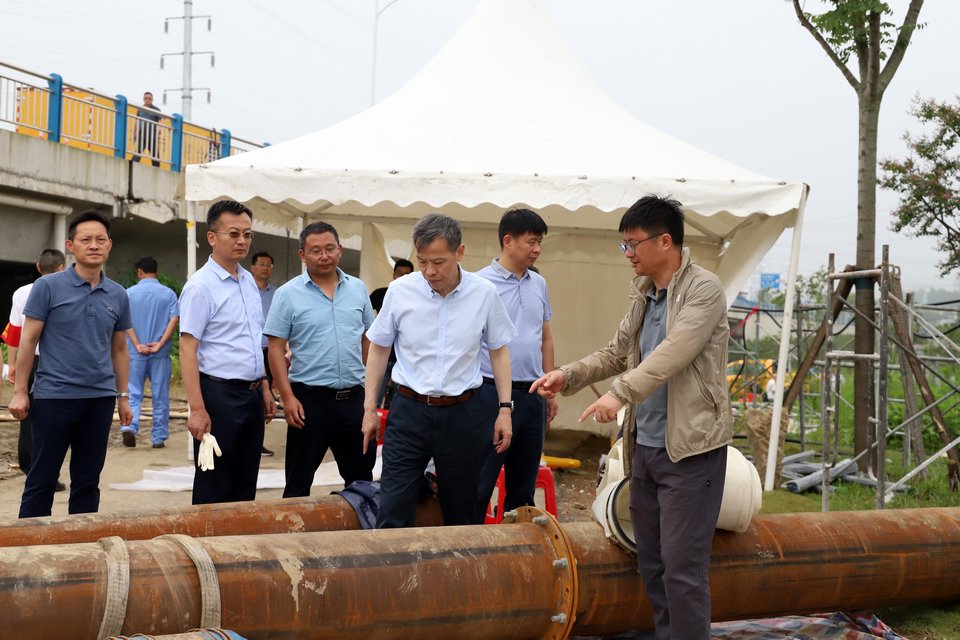 调研中,秦远望听取了抢险工作进展情况的汇报,实地查看路面排涝、泵站抢险进度,并步行至各个排水管点位,详细了解派河水情和抢险设备运行情况。秦远望强调,各部门要严格落实值班值守制度,坚守工作岗位,密切关注水情,层层压实责任,保障抢险工作有序高效运转;要继续加大排涝力度,做到积水不退、泵机不停、人员不撤,全力以赴降低灾害造成的损失。