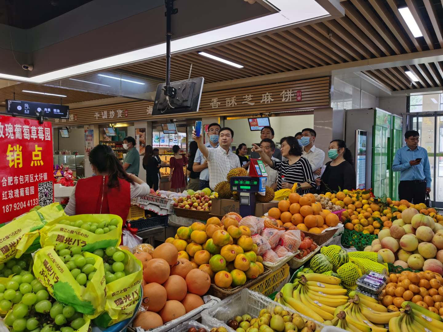 9月29日上午,重庆市商务委二级巡视员蒋中全率领重庆市商务代表团约20人莅临海恒菜市场考察,合肥市市场局吴翔处长、区市场局夏芳科长、安徽一鸿公司唐连峰、中国电科16所江健、公用公司菜市场组朱欢等人陪同考察。