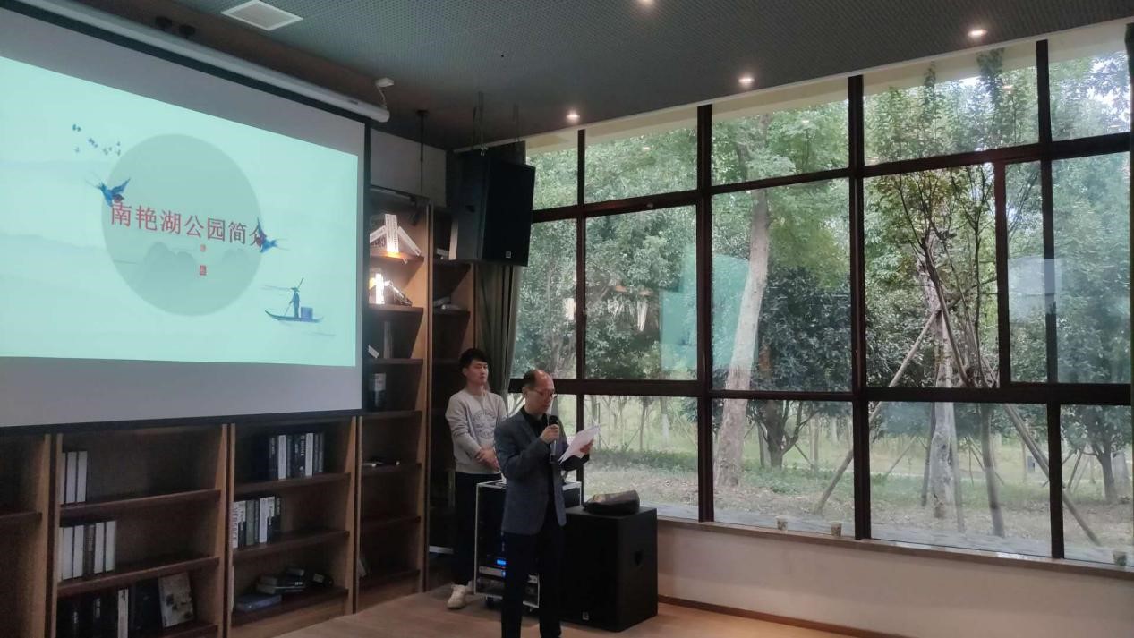 随后南艳湖公园园长深入地结合南艳湖目前的发展情况,讲解了南艳湖的园区风貌、景观亮点、南艳湖的功能及南艳湖公园目前的鸟类情况。南艳湖公园作为国家中国候鸟观察点和中科大自然观察点,为鸟类提供安全的栖息地和充足的食物,旨在实现人与鸟类和谐共存的生态公园目标。