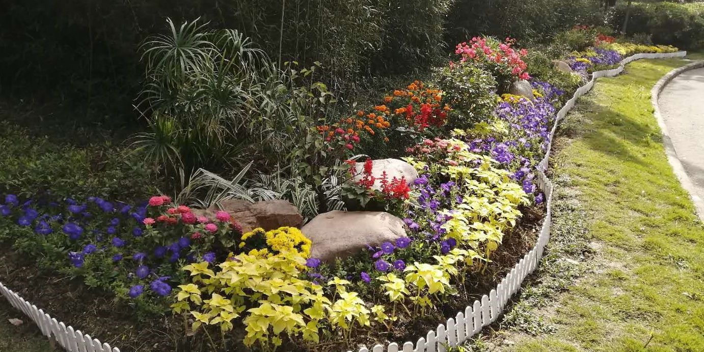 翡翠公园管理用房入口沿竹林边处,利用大旱伞、春梅、茶梅、毛鹃等15种以上植物,打造出一处集绿化、美化、花化为一体的带状花镜,为景区增色添彩!