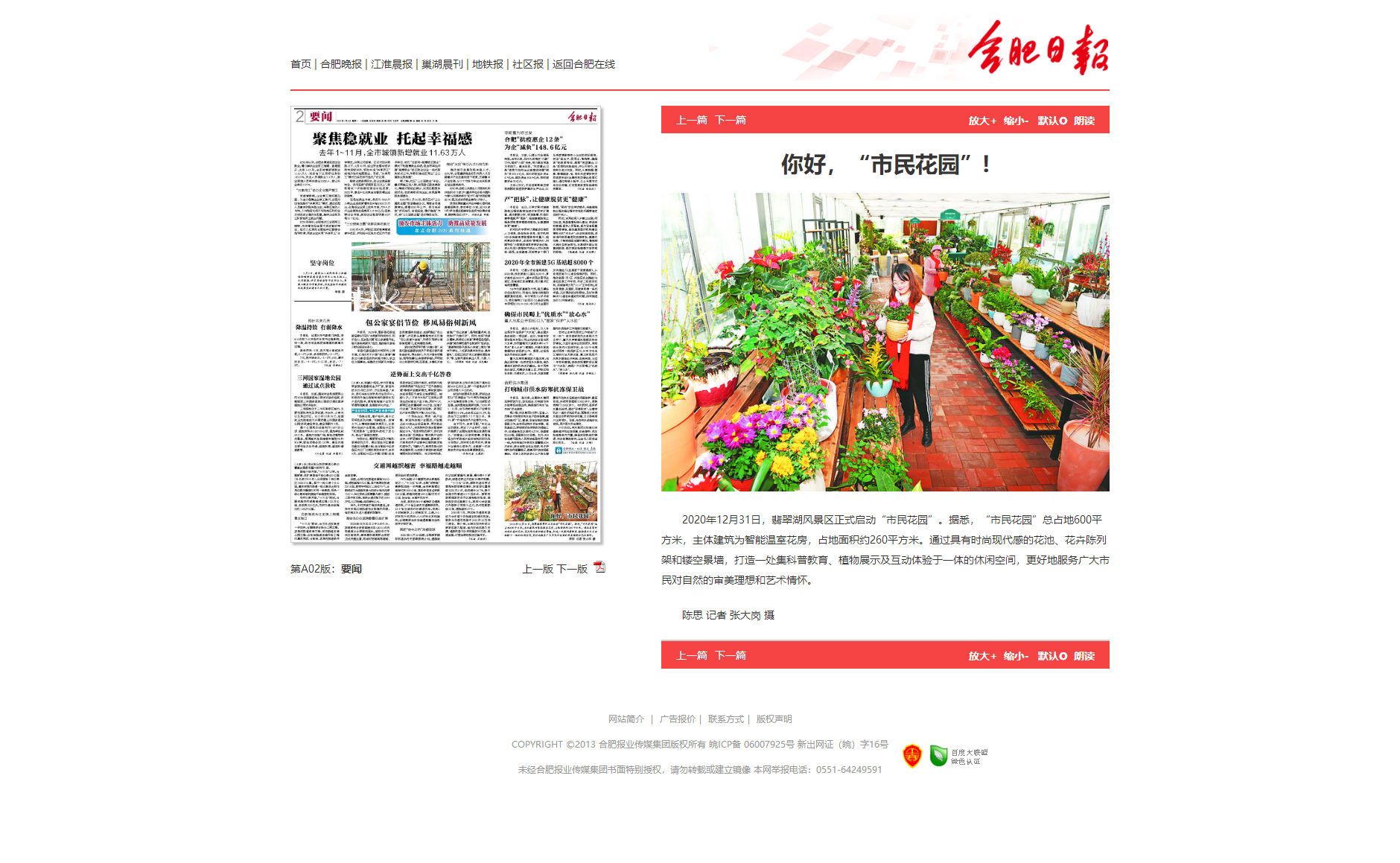 合肥日报:你好,“市民花园”:http://newspaper.hf365.com/hfrb/pc/content/202101/04/content_220756.html。