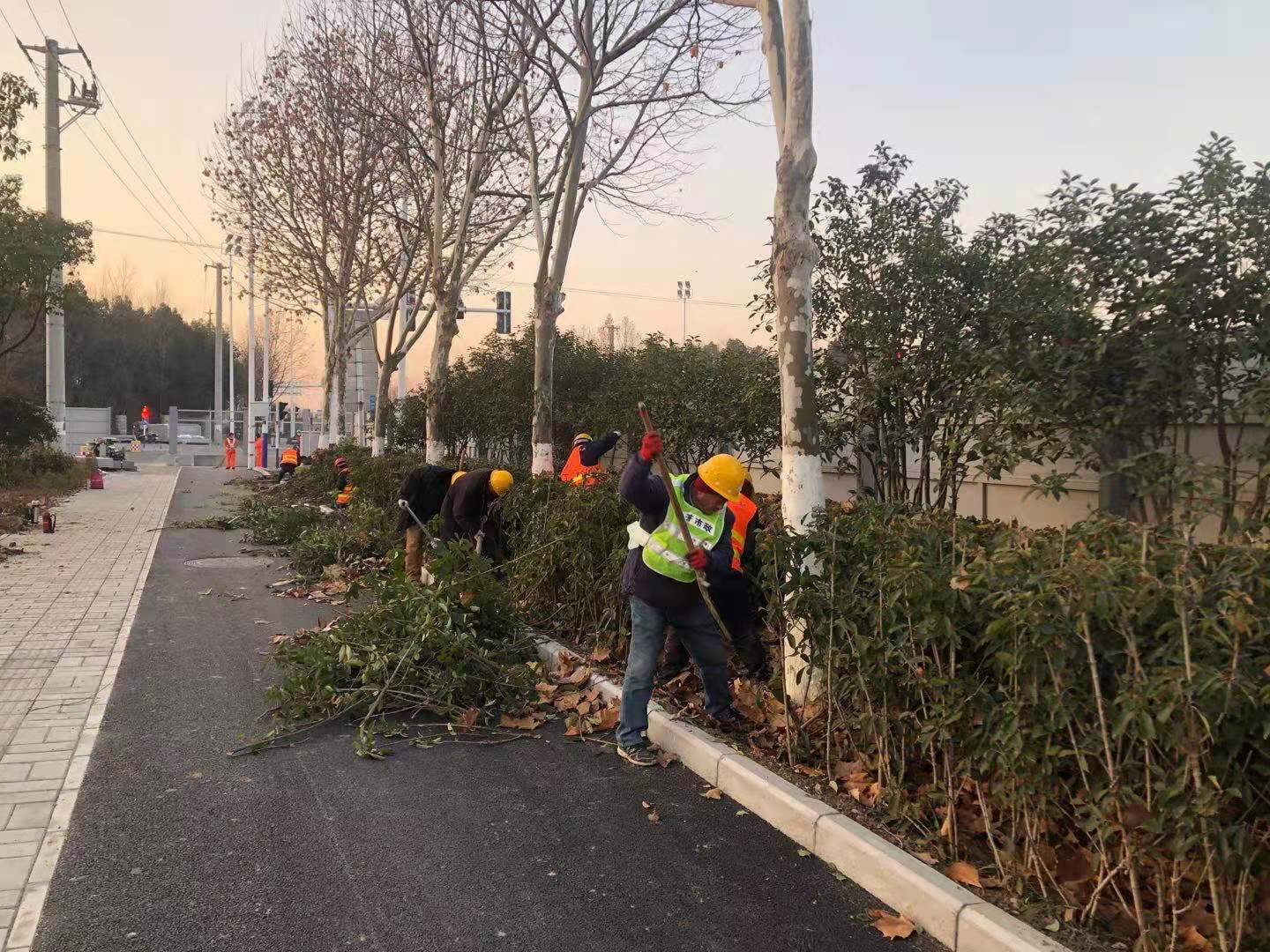 为保障整体工程进度,香怡园林全员参与,放弃元旦休假,加班加点,不惧风雪,投入大量人、材、机械,严抓施工质量、安全生产、疫情防控等各项工作,并对现场做好围挡封闭、警示标牌示警及行人车辆引导,避免交通、意外事故的发生,尽量减少对市民出行的影响。