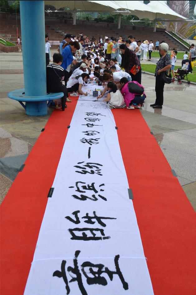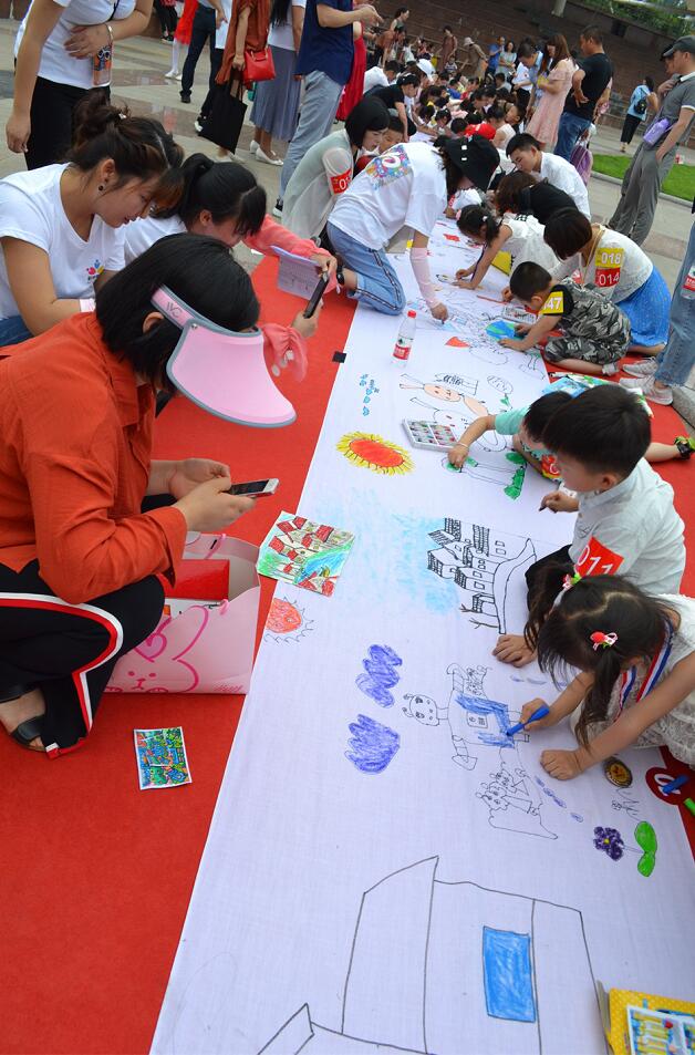 6月1日至6月3日,为庆祝“六一”儿童节,由安徽新晔教育集团主办的“童眸缤纷——我的中国梦”主题活动在徽园成功举办。活动分三个板块,分别为作品展览、颁奖活动及现场书画活动。在作画现场,小朋友们围在十几米长的画卷上共同作画、写书法,吸引了不少游客驻足观看,纷纷为孩子们点赞,带孩子前来游玩的家长们也和孩子加入到共同创作的阵营中。