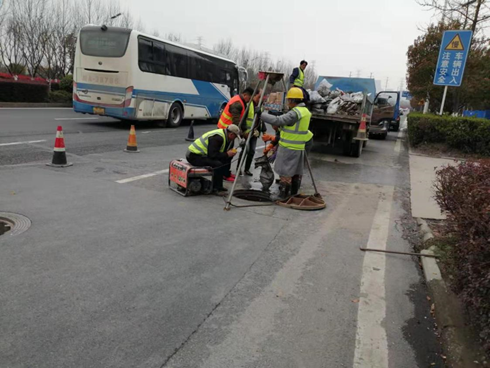 根据管道特性及现场环境,本次清淤行动主要采用人工及机械清淤两种方式,部分管道内有毒有害气体超标,则采用高压水枪和吸污车相结合的方式进行清淤。其中,部分管涵,因作业空间较为有限,只能以人工清淤为主,工人们需在3米以下的箱涵处手动作业,将淤泥铲入袋中,每袋约装50斤,再通过一架小型的提升卷扬机运送上地面。