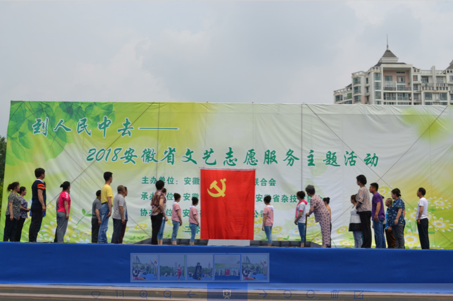 “五一”小长假期间由安徽省文学艺术界联合会主办,安徽省戏剧家协会、安徽省杂技家协会承办,安徽徽园管理有限公司协办的“到人民中去—2018安徽省文艺志愿服务主体活动”在徽园成功举办。