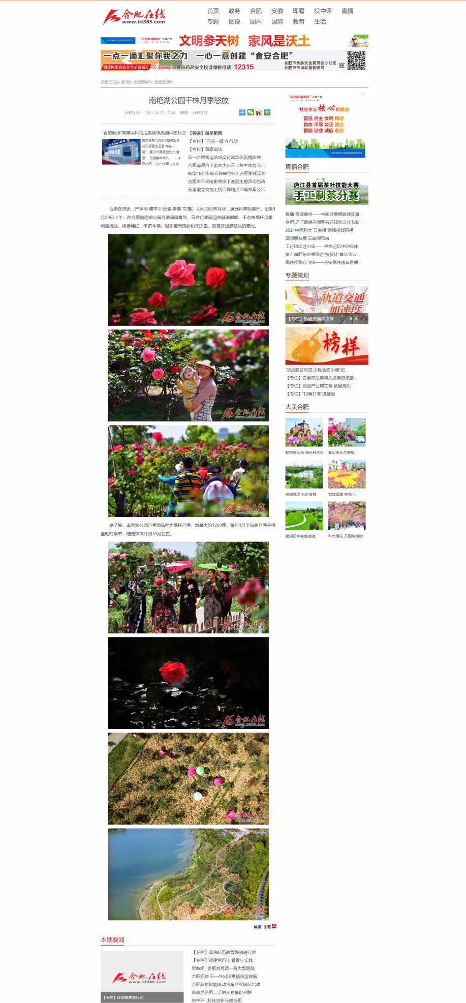 合肥在线:南艳湖公园千株月季怒放 http://www.hf365.com/2021/0429/1348913.shtml