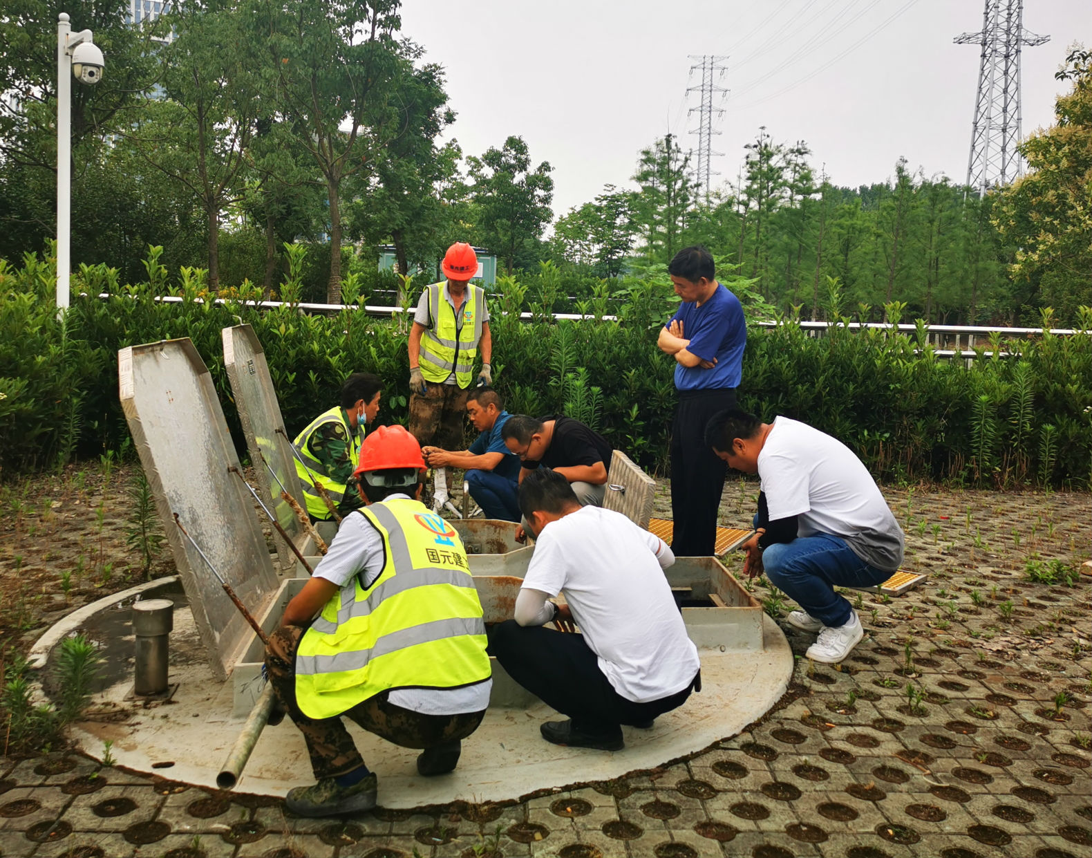现场负责人在日常巡查中发现出潜水泵存在堵塞问题,立刻联系专业维修工作人员,经过4小时仔细清掏,顺利完成清掏工作。