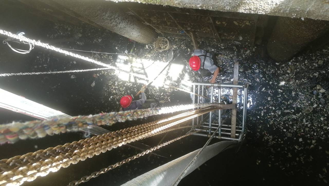 此次清淤工作主要采取人工下池、起重机装吊、污泥外放的作业方式,按照清淤方案设计,雨后立刻降低液位,为泵池清淤工作准备。现场工作人员先是打开盖板通风通气,进行气体检测,并架设专业清淤用泥沙泵,人工下池后发现管道前段沉积物淤积深度就有一米多,这就加大了清淤工作的难度,经过现场多次调整作业方案之后,历时10天顺利完成泵池清淤工作。清淤工作完成后,池底无无木棍、砂石、絮状物、淤泥等明显沉积物,排除了淤泥阻水、杂物堵塞等隐患,为今年安全度汛打下坚实基础。