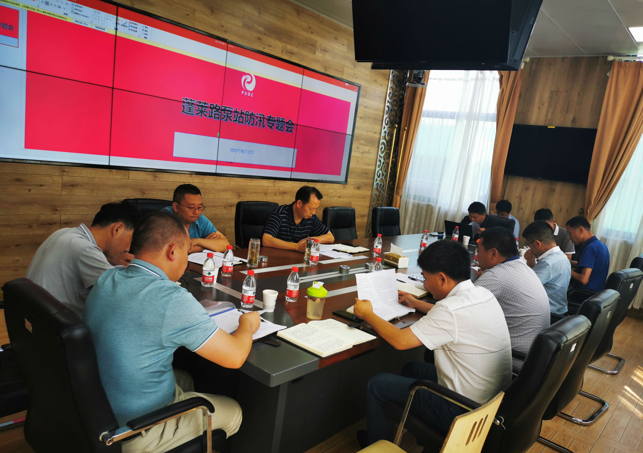 6月22日下午,工委委员、管委会副主任王家和主持召开蓬莱路泵站防汛专题会议,建发局、重点工程中心、应急局、公用公司等部门参加。
