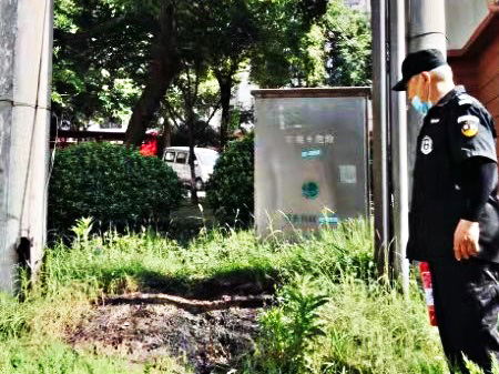 6月23日上午,方兴园小区香怡物业秩序维护员在例行巡查的过程中,发现小区23栋住宅楼西南侧的变压器出现异常情况。高耸的变压器时不时发出噼里啪啦的声音,不一会,几蔟火花从变压器上冒出,掉落在草坪上,并点燃了草坪。
