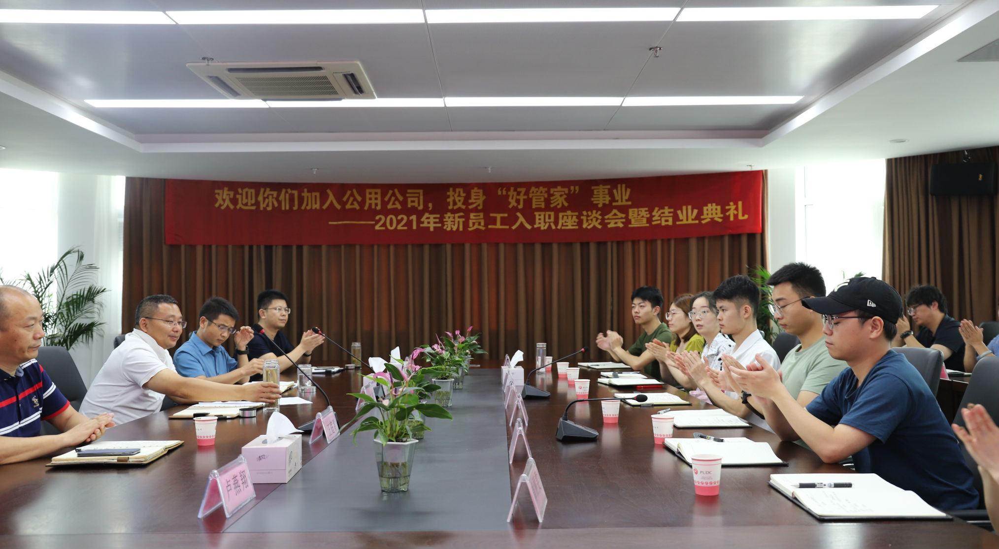 7月9日上午,公用公司2021年新员工入职培训暨结业典礼圆满结束。本次培训包括区情、司情、廉政教育、公司规划、业务讲解、规章制度培训、2019年新员工代表交流、自管代表性项目参观等内容。