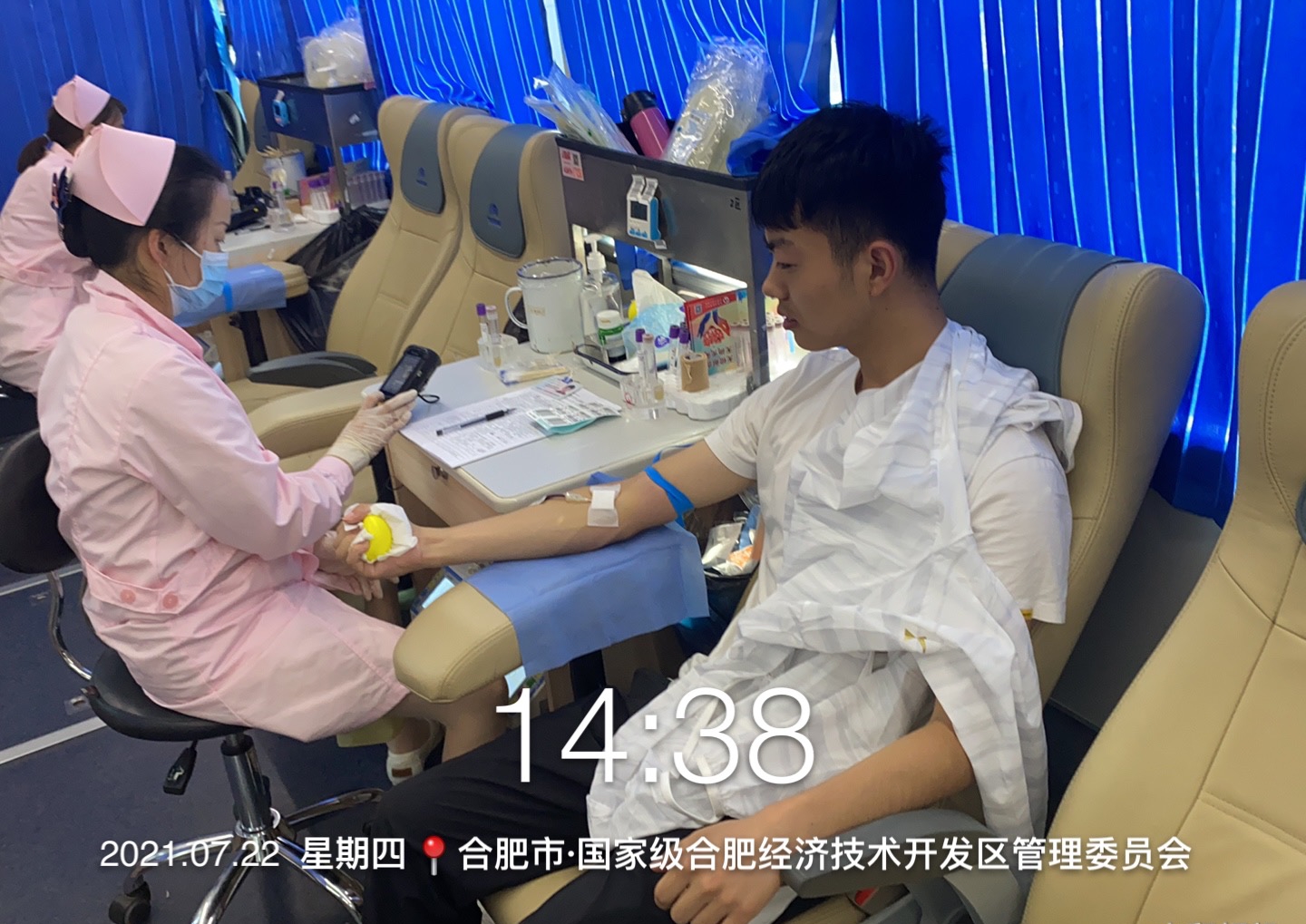 7月22日,公用公司组织20余名员工集中前往区管委会,参加2021年义务献血活动。