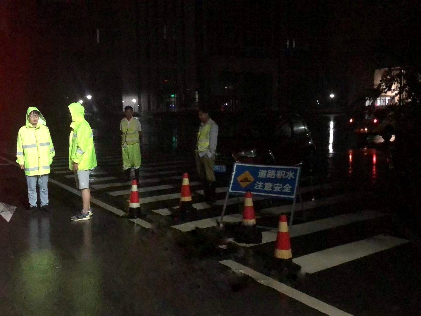 28日凌晨1点,新桥科创示范区雨势渐大,市政及物业值守人员此时已在定岗点位守候了一整天,大家拖着疲惫的身体抖擞起精神再次进入实战状态,分公司防汛巡查车辆也在示范区主次干道、重点防汛点位及小区车库等进行反复巡查,时刻关注积水情况,并安排专人根据积水情况,适时设置警示标志,对过往车辆进行积水警示和交通疏导,全力保障交通出行安全。应急处置人员用洋镐、铁锹、双手等“作战”工具,不断清理收水井内及周边冲刷堆积的杂物,疏通雨水管道,加快雨水下泄速度,保障市政道路及小区管网正常运行。7月27日6时至28日5时,分公司累计出动防汛巡查值守人员240余人次,巡查应急车辆30余台次。