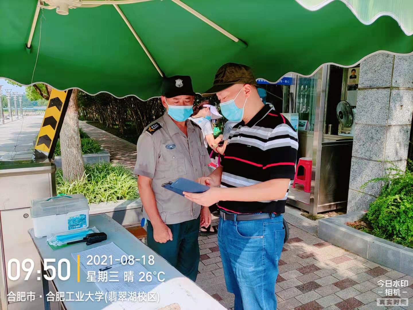 汪庭歌先后来到明珠广场办公楼、朝霞菜市场、朝霞园、翡翠湖风景区等十余个项目现场,详细检查扫码查验、体温检测、隔离线划设、疫苗接种宣传、口罩回收专用垃圾桶摆放、消杀用品保障等防疫工作落实情况,并现场指导项目点工作人员“双码联查”工作。