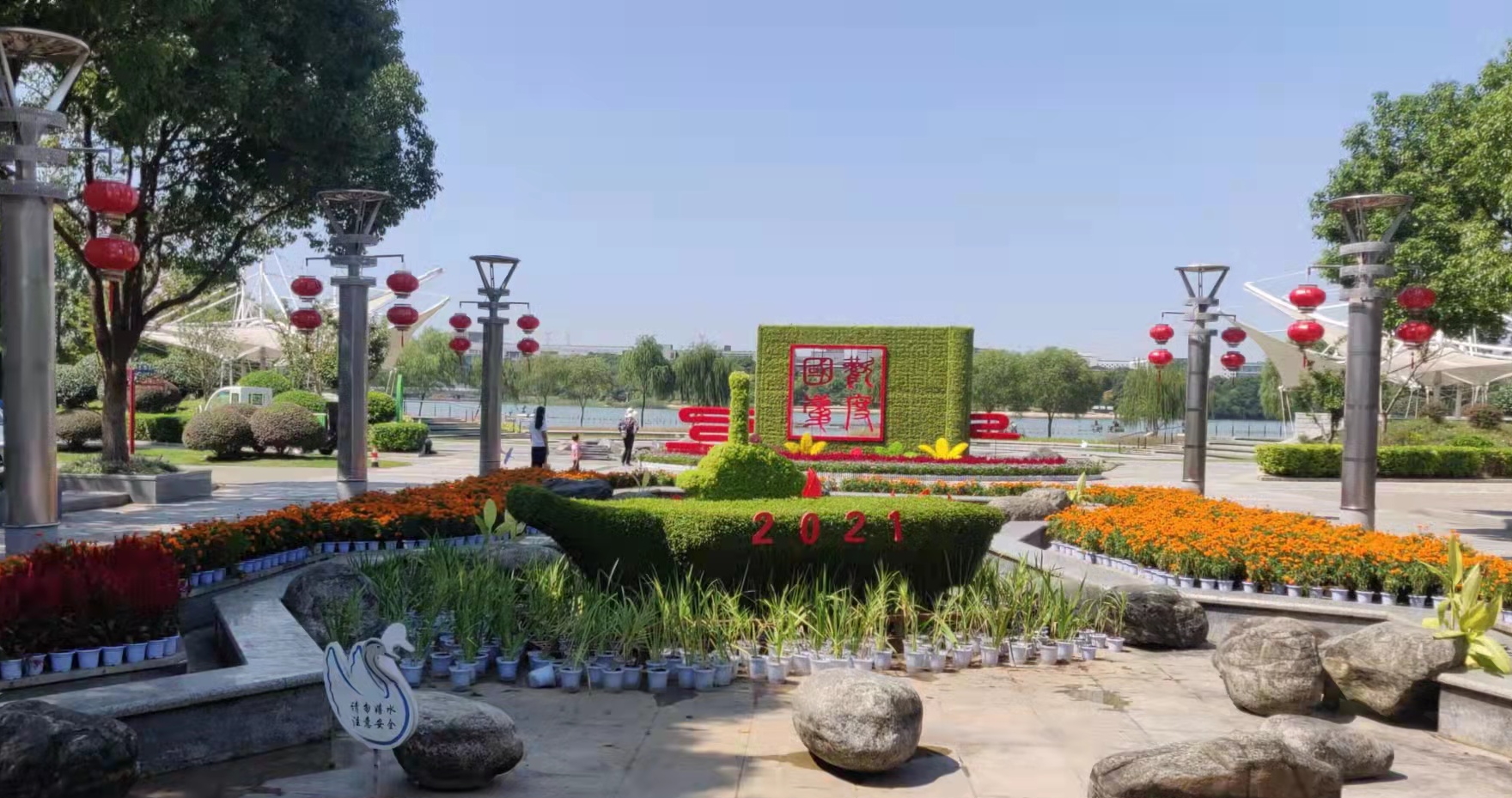 此次共有南艳湖、翡翠湖、宿松路与始信路交口、空港团肥路与机场便道交口及明珠广场5处花展布展,分别以“自然生态、美好生活”、“建党百年、大国复兴”、“科技兴国,工业立市”、“五彩经开、空港腾飞”、“城市管理新篇章”为主题,利用绿雕和色彩缤纷的花卉,展现出社会祥和、国家富强的寓意。