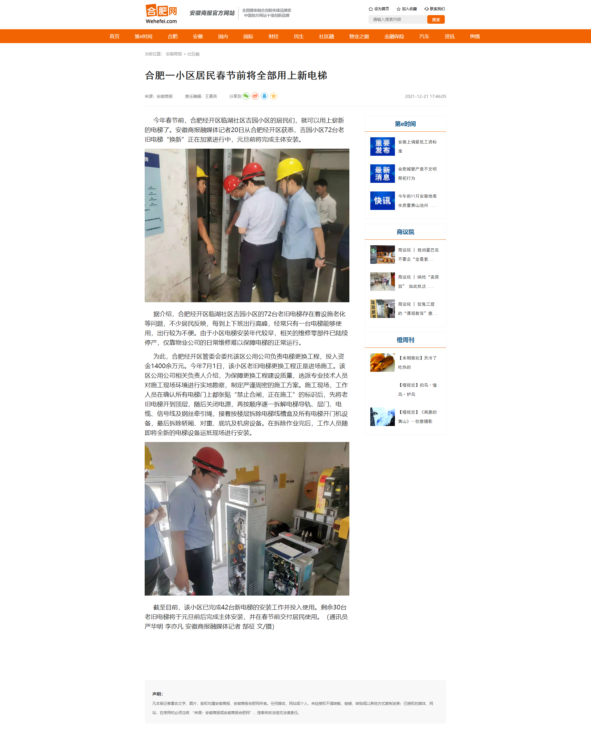 安徽商报:合肥一小区居民春节前将全部用上新电梯http://www.wehefei.com/news/2021/12/21/c_390516.htm