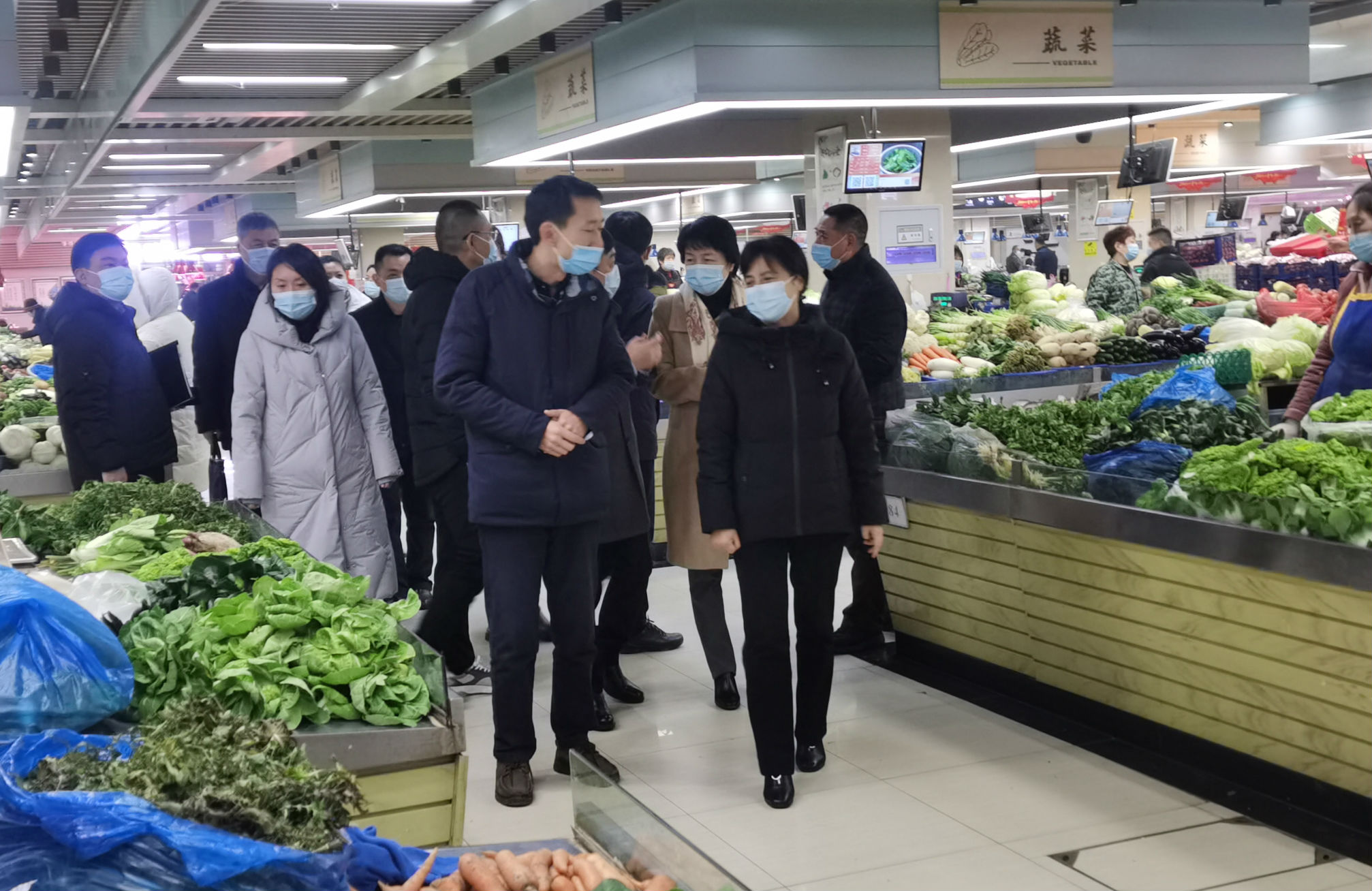 在春节即将到来之际,为确保节日期间我市菜篮子供应充足,市场安全有序。1月27日上午,合肥市副市长赵明,合肥市市场监管局、市商务局相关负责人一行赴经开区海恒菜市场,就节日期间菜市场疫情防控、保供保价和食品安全等工作进行专题调研,经开区市场局、公用公司相关领导陪同。