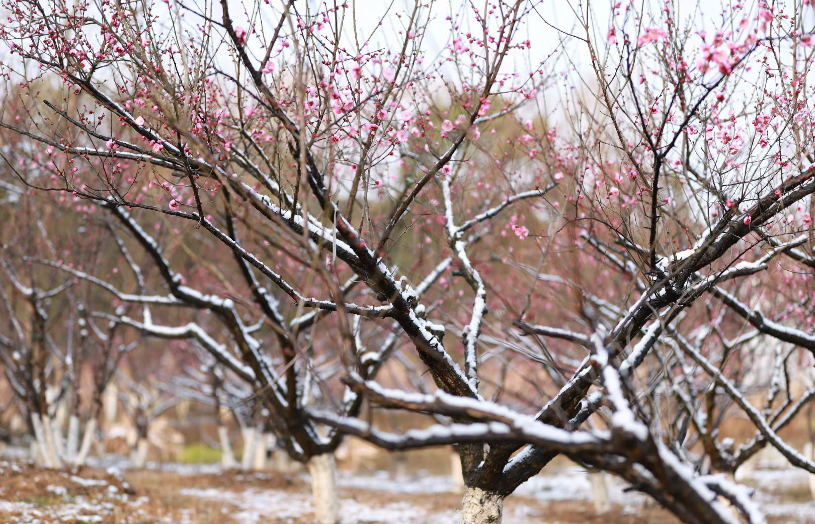 百花迹已绝,唯有梅花香,南艳湖公园梅花凌寒而开,疏枝斜影,灿如云霞