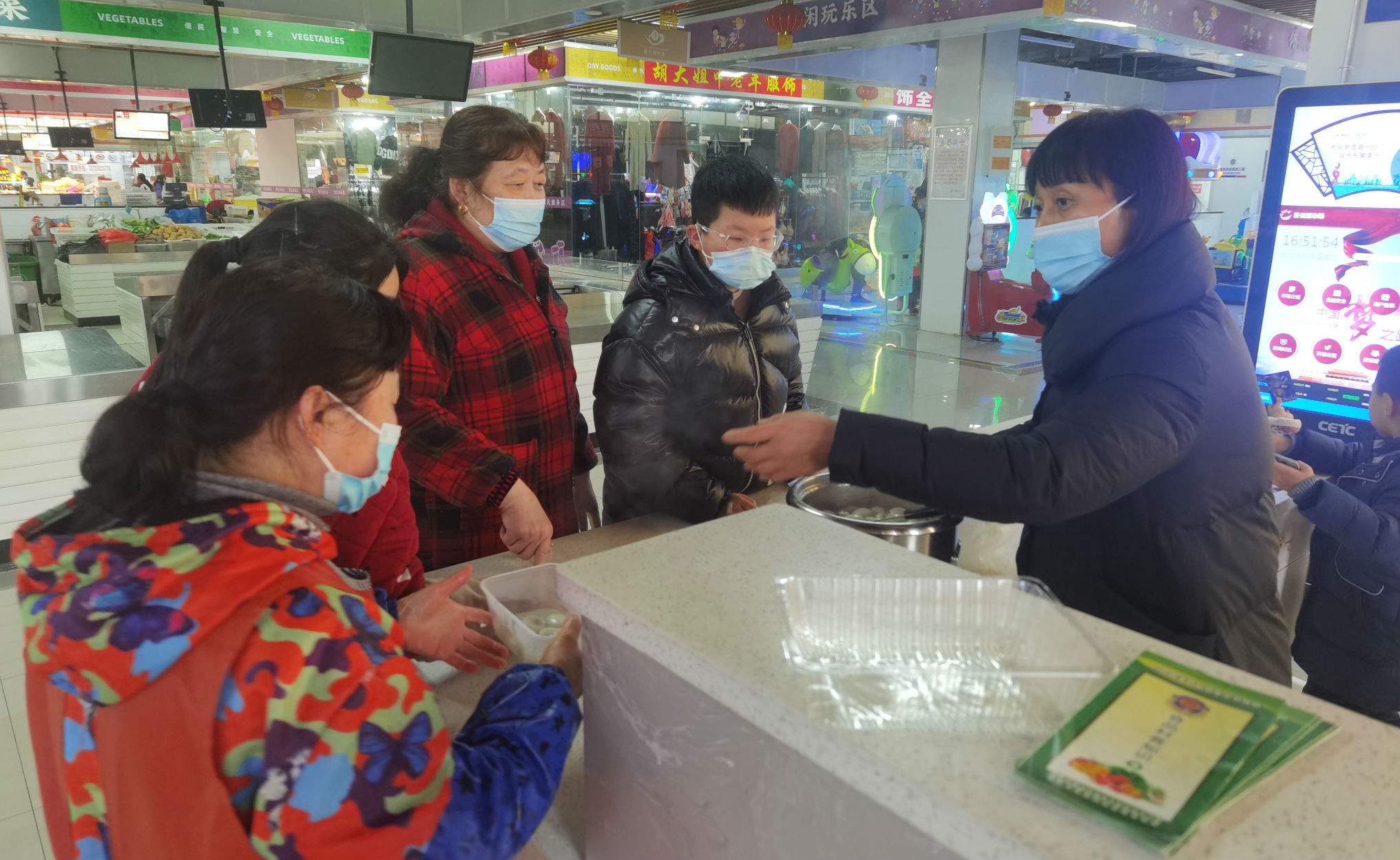 当日临湖社区商圈党支部早早备好食材,在市场内为商户们煮起了汤圆,不一会就香味扑鼻……“现在生意比较好,疫情防控要求又严格,大家辛苦了,快来吃点汤圆暖暖身体吧!”市场工作人员们将一碗碗热气腾腾的汤圆递送到市场商户们的手中,给他们送去甜蜜并致以节日最美好的祝愿。