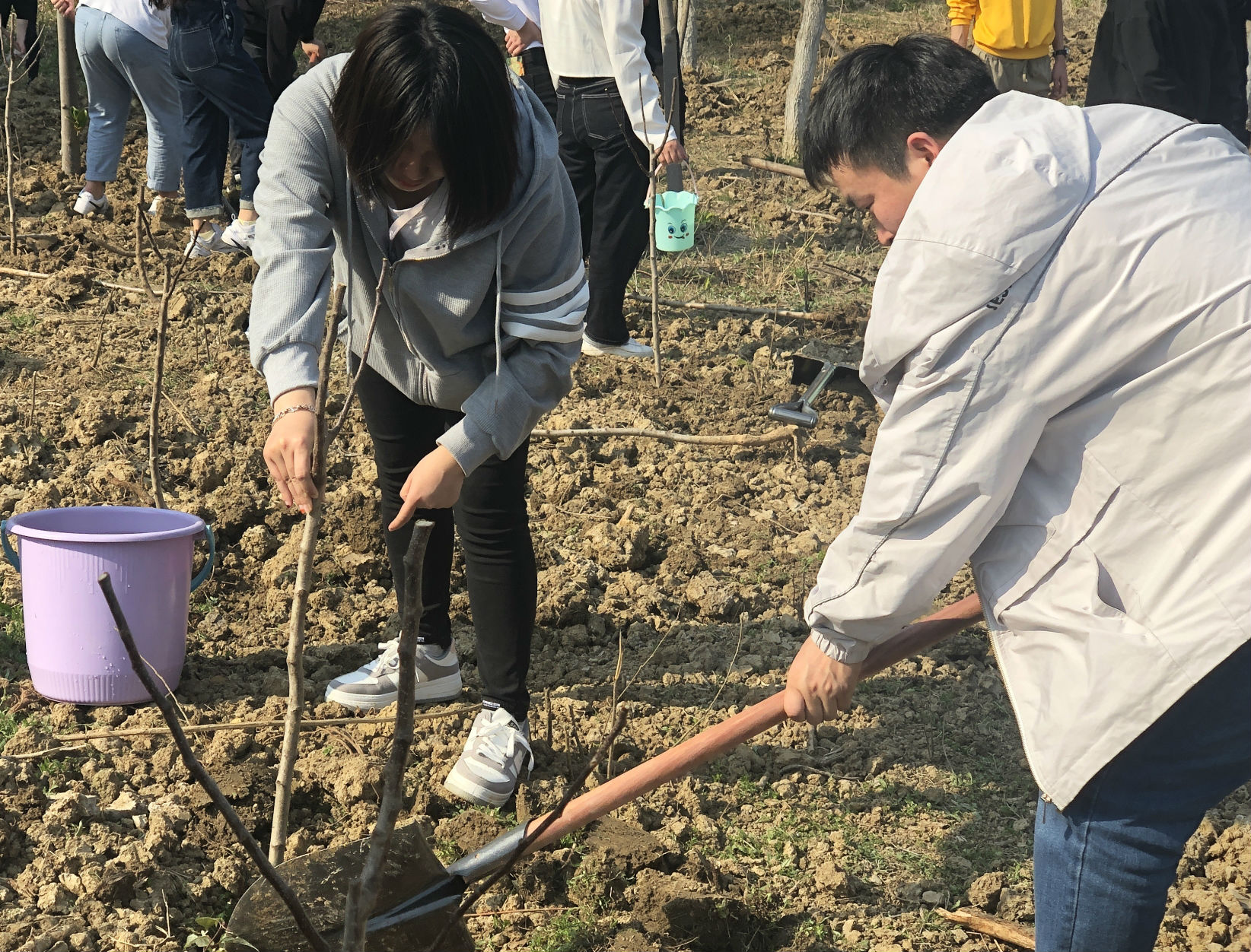 树木带给我们绿色的希望,它是环境的守护者。今天作为以树木为主角的节日,南艳湖公园联合小麦飞舞公司,在美丽的二号公厕旁种下了寓意幸福、美好的山楂树。为保障此次植树活动顺利开展,南艳湖公园提前策划,做好整地、拉线定点、栽植工具准备等各项工作。活动现场,管理处安排绿化专业人员现场指导,大家拿起铁锨和水桶等工具,分工协作,紧张有序,挖树坑、填土、浇水、培土,每个环节都一丝不苟,一派热火朝天的景象,辛勤劳作的身影为春天的南艳湖公园增添了一道美丽的风景,经过一下午的汗水挥洒,53株山楂树在林地中排列整齐,昂首挺立,新植的小树吐出的新绿与园区葱翠的植物交相辉映,在明媚的春光下呈现出勃勃生机。