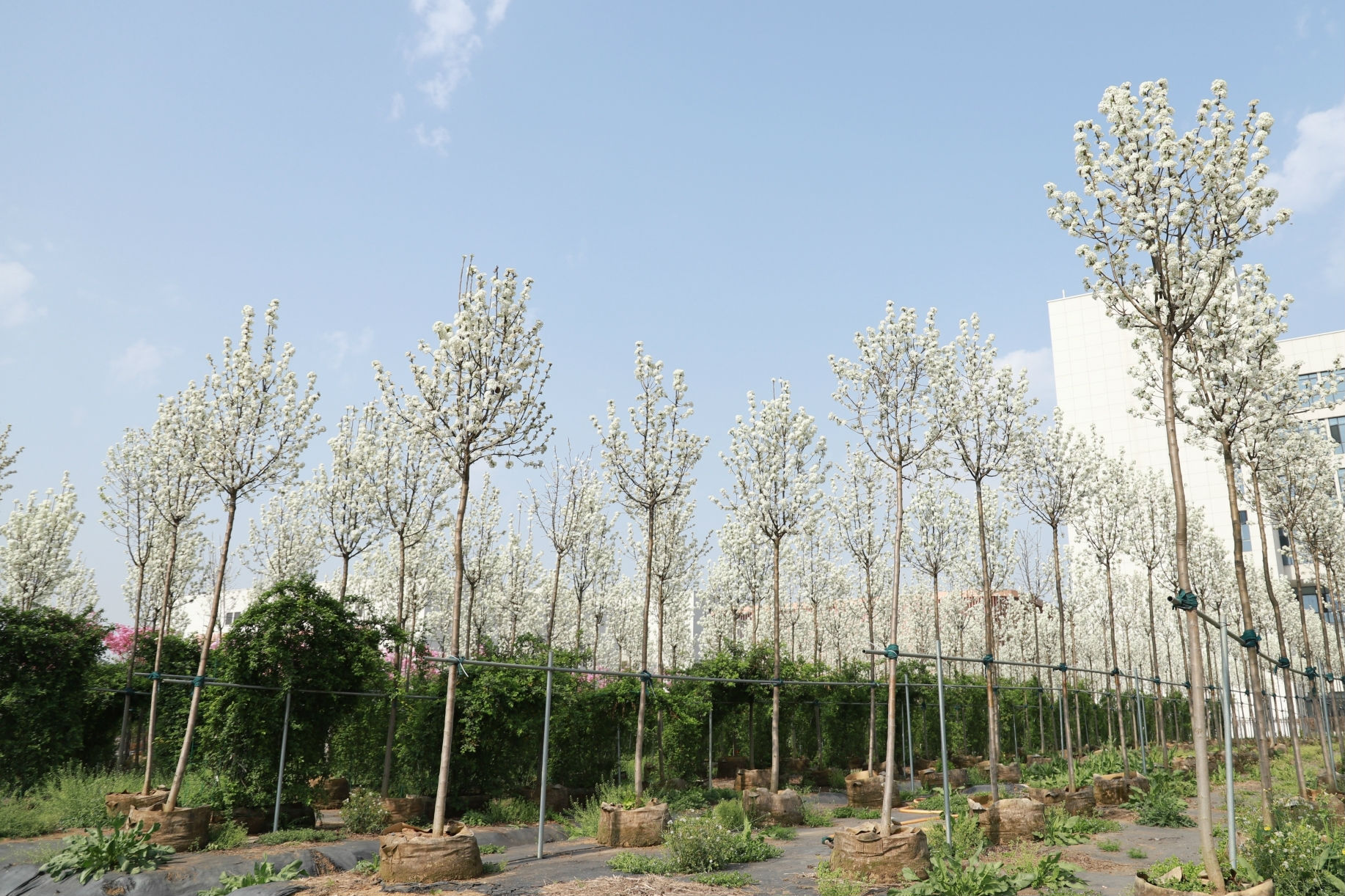 汤口路苗圃内的两千余株早樱、豆梨