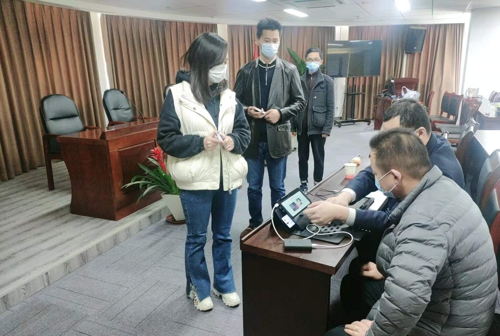 近日,公司党群部协同财务部主动对接金融机构,邀请中银经开区支行来我司进行上门服务,办理第三代社保卡和激活手续。活动现场,员工手持身份证,保持一米间隔有序进行。