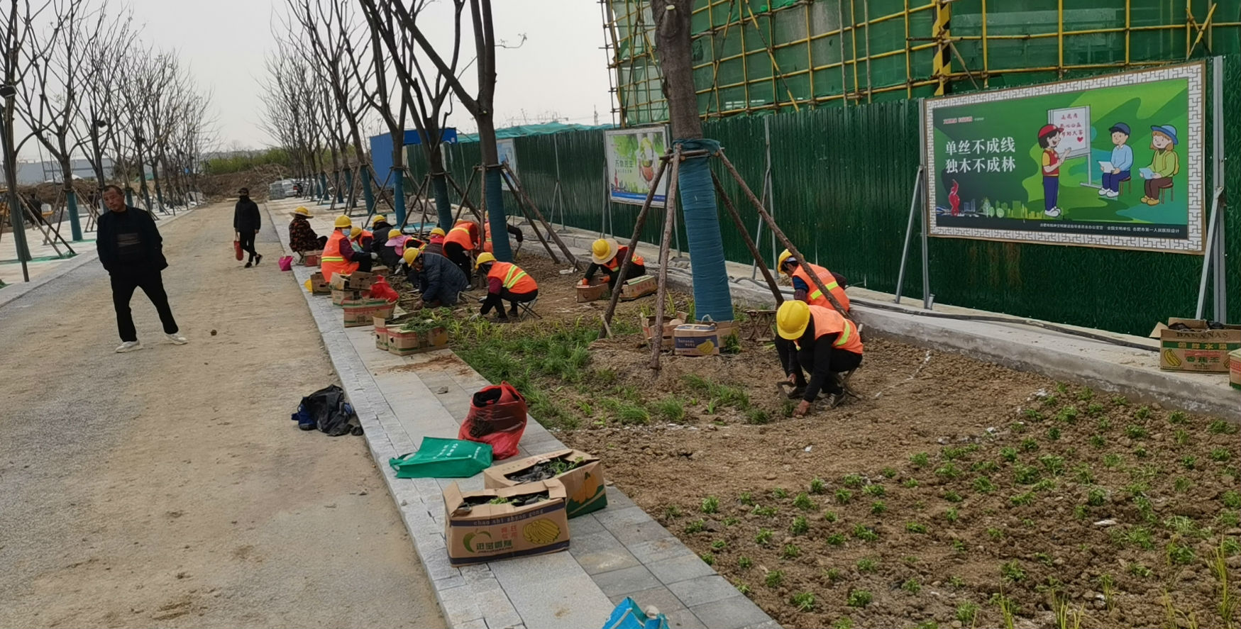 香怡市政园林建设公司在加强疫情防控的同时,积极克服疫情带来的不利影响,项目负责人总负责,科学谋划、制定工作计划、根据现场进度和苗木到场情况安排工作量,一步步推进,一项项落实,抢抓春季植树的黄金时期,保障园林各项目高质量有序推进。