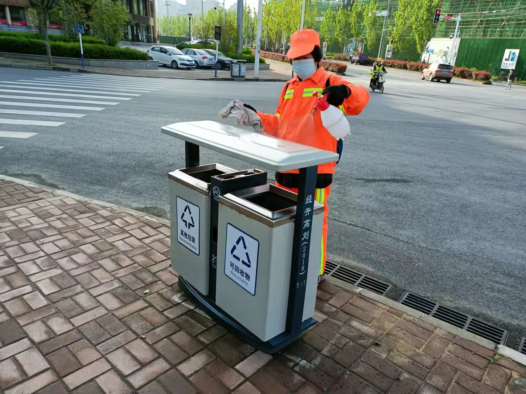细划分工,狠抓落实。防控工作组下设管理人员、机械作业、一线保洁、垃圾清运四个小组,对照疫情防控要求,采取机械、人工相结合的作业模式,使用雾炮车、洒水车对主干道进行大面积消杀,同时严格执行消杀程序,对公厕、公交站亭、垃圾桶、果皮箱及垃圾清运车等实行常态化、高频次消杀,其中公厕每小时即消杀一次,降低病毒传播风险,为民众提供干净、安全的公共环境。