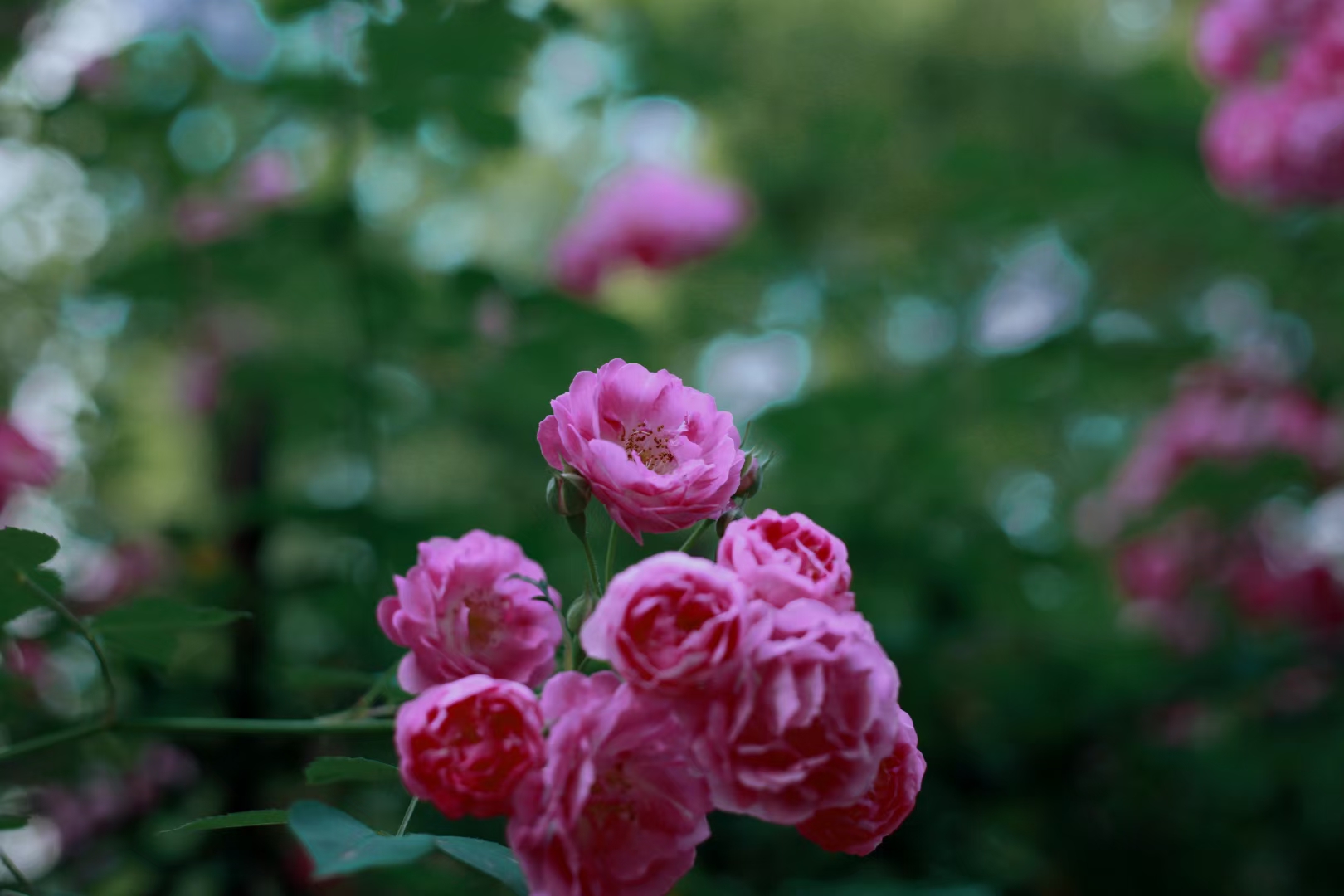 微风轻抚,摇曳多姿,无意间透出一抹白粉色,浅浅的、羞答答的、隐隐若若的,不敢争春,似乎又怕失去春,那份与世无争的淡然和素雅抚慰那颗躁动的心,是恰到好处的。