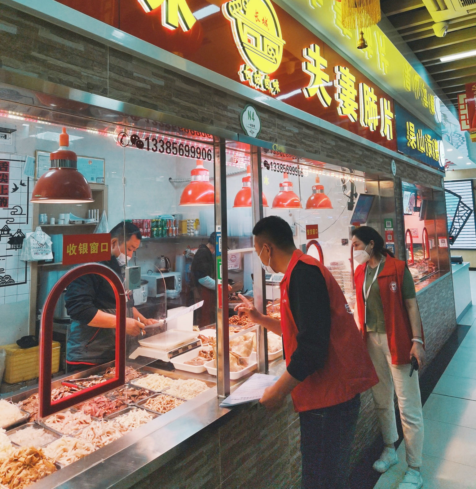 市场不断强化食品安全管理责任意识,多措并举严保食品安全。第一重防护,严把进货关。定岗定责,严格落实索证索票制度,每日查验各类农副产品进货凭证并留存备查,确保采购来源可追溯。第二重防护,每日农残检测。每日开市前随机对在售菜品进行农药残留、盐酸克伦特罗、吊白块、甲醛等项目的快速检测,检测数据实时上传相关信息管理平台,并及时公示在市场公示屏。对于不合格样品,按规范流程立即处置暂停销售、销毁处理并备案登记。第三重防护,定期食品抽查。各市场每月开展不低于三次的食品安全专项检查,做到所有食品全覆盖,抽查市场内有无过期、变质食品销售。第四重防护,食品防疫管控。按照疫情防控人物同防要求,市场内每日定时进行消杀、通风作业,特别加强进口冷链食品和进口水果的监管,严格实行“全进仓、全检测、全消杀、全赋码”闭环管理,切实防范进口食品输入风险。第五重防护,逐级考核测评。针对对菜市场不同层级的考核标准,公司安委办及中心开展逐项测评督查考核,及时发现问题限时回访整改。