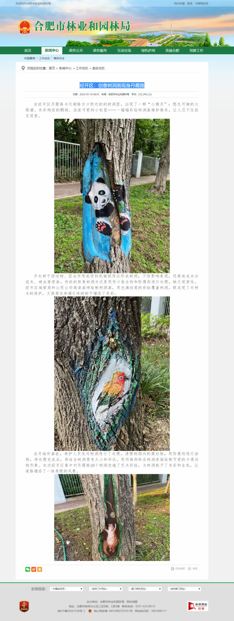合肥市林业和园林局:经开区:创意树洞画现身丹霞路