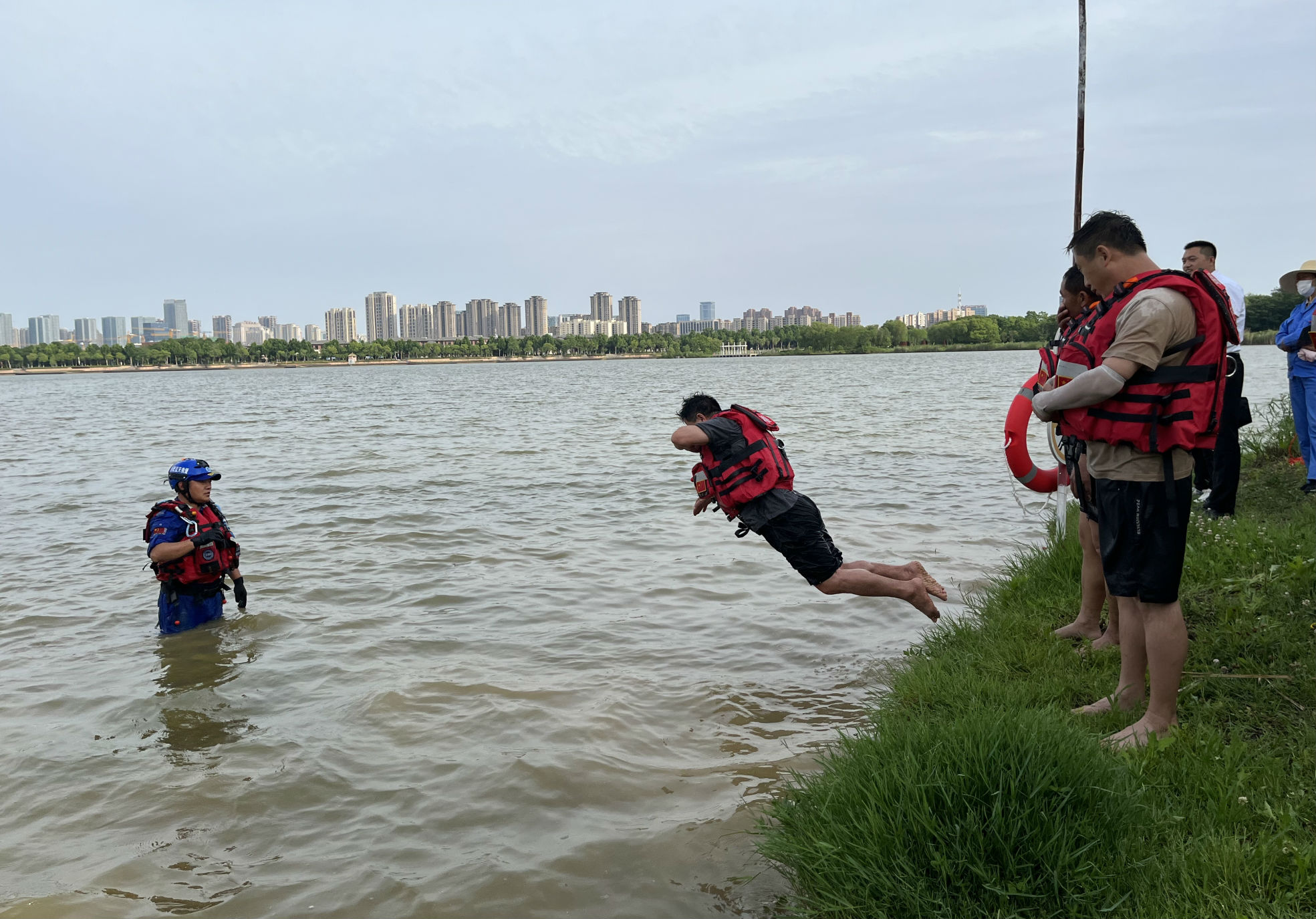 随后大家来到南艳湖中坝水域,老师首先对两湖增配的救生设施激流马甲和抛绳包的使用进行讲解和演示,并强调保护自身生命安全的重要性;随后进行正确入水方式及规范救助落水者的演练,反复练习直至熟练掌握。