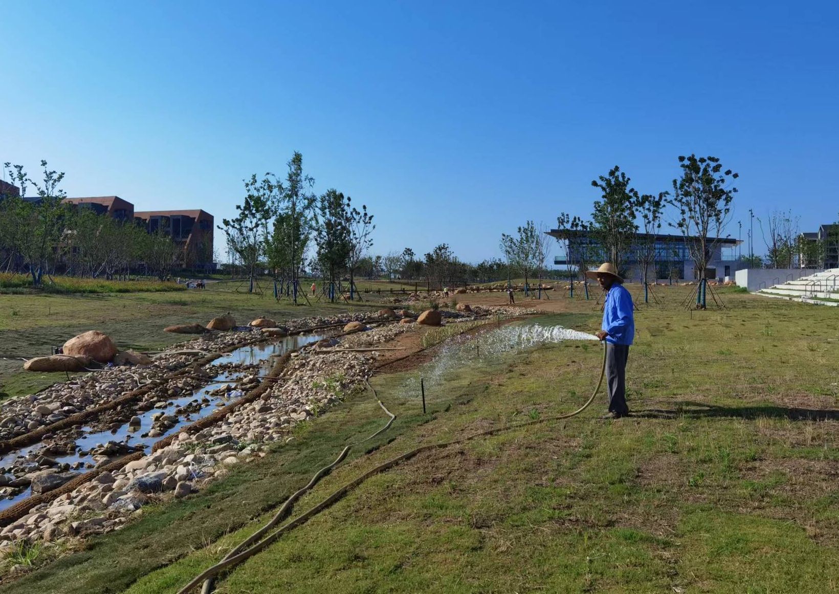 6月,夏日拉开序幕,白天平均气温达到33度,连续的晴热天气,给项目新栽苗木带来了巨大的挑战。