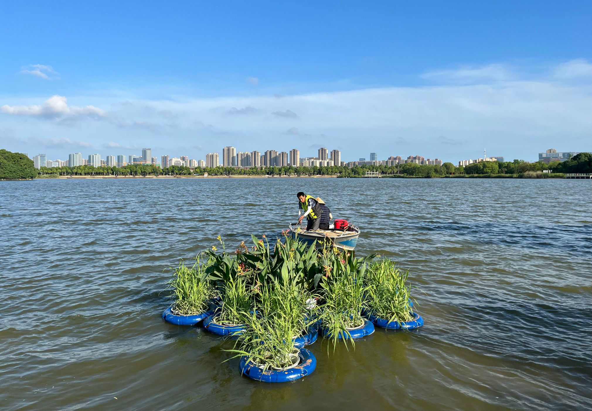 这是南艳湖公园首次利用废旧物资对“生态浮岛”的尝试,后期还将充分发挥浮岛的水质净化和美化环境的功能,在南艳湖水域运用。